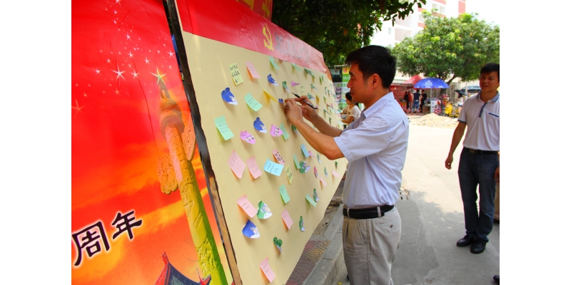 7月1日上午,庆祝建党94周年“向党说说心里话”现场寄语征集活动在我校A区门口举行,活动吸引了大量师生参加,大家都积极寄语,由衷地抒发了对党的热爱以及对未来的展望。