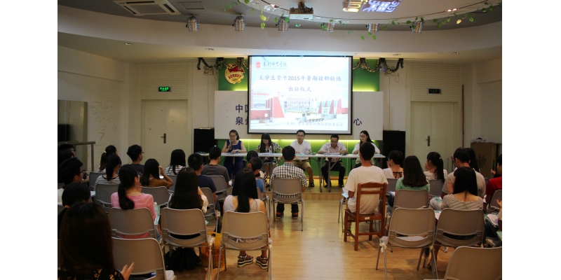 下午,我校举行大学生骨干2015年暑期挂职锻炼出征仪式,校团委负责人,鲤城区团委、丰泽区团委相关负责人,带队老师及挂职学生出席活动。