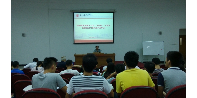 8月11日,我校2015年“互联网+”大学生创新创业竞赛培训在孙中山纪念堂第一学术报告厅正式启动,出席本次培训开班仪式的有学生处处长王泗水,学生处就业指导中心的老师,创业培训导师及初赛入围团队成员。