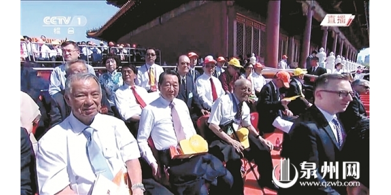 我校名誉董事长陈永栽(左一)受邀在天安门城楼观礼。