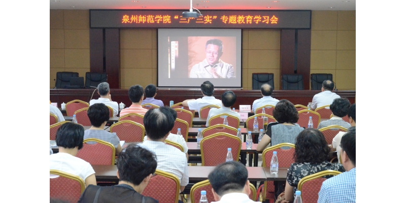 9月14日下午,我校在行政楼101会议室举行“三严三实”专题教育学习会,观看《作风建设永远在路上—落实中央八项规定精神正风肃纪纪实》专题片。校领导李清彪、张舟、高云程、林华东、王珊,校长助理、组织部部长陈亚兵,副处级以上干部观看了专题学习片。学习会由校党委副书记高云程主持。