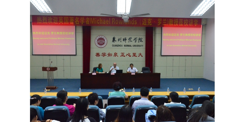 嘉宾名片:迈克•罗兰教授是伦敦大学考古学博士,伦敦大学文明研究中心创始人、主任、教授,皇家人类学学会会员,《物质文化研究》杂志主编,前世界考古学会会长,主要从事人类学和考古学研究,在国际学术界享有很高的声望,他的研究有着深厚的理论前沿魅力,近年来共出版著作5部、学术论文20多篇。迈克•罗兰教授致力于探究文化人类学中的社会文化领域及其关键问题。他曾到非洲这块远古文明大陆进行过多次深入的田野考察工作,其中喀麦隆和马里两地是他最重要的调查地点。2006年以来,迈克•罗兰教授开始涉足中国的文化人类学研究,他曾到我国云南省、四川省做过田野调查,也曾经4次访问我们泉州。2012年,他在伦敦大学创办了文明研究中心并担任主任,他对中国的文化遗产保护有着浓厚的兴趣。