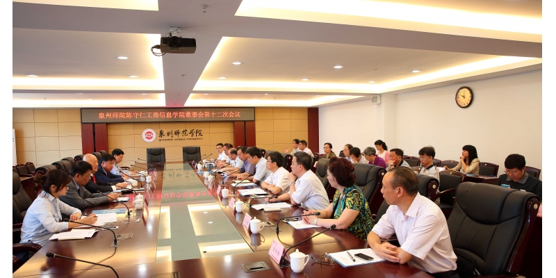 10月8日上午,工商信息学院董事会第十二次会议在行政楼201会议室隆重召开。会议由联泰国际集团董事长、泉州师院副董事长、工商信息学院董事长陈守仁博士主持,校领导游小波、李清彪、张舟、高云程、林华东、王珊,董事陈亨利、李和协及嘉宾陈文峰、庄琳琳,学校相关部门负责人、工商信息学院院务会成员参加会议。