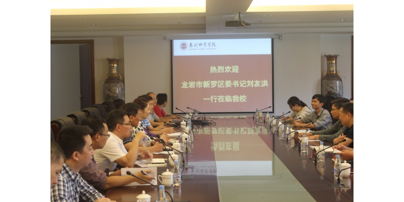 日前,龙岩市新罗区委书记刘友洪率代表团一行10人来校交流,副校长王珊主持座谈会。校科研处、数计学院、工商学院相关负责人及部分教师参加会议。