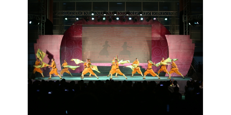 晚会在开场舞《青春》的激情欢舞中拉开序幕,音乐与舞蹈学院带来的闽南语小组唱《故乡》,表达了学校这个第二故乡对五洲四海新生的热烈欢迎;文学与传播学院带来的舞蹈《采薇》,体现了传统文化的韵味;校原野剧社带来的相声《好好学习》,以诙谐幽默的语调及结合多国流行语言的穿插运用,引得场下笑声连连;校Fresh Man乐队带来的歌曲《love story》,凭借女主唱浑厚有力的音域以及对整首歌曲节奏的精准把握,使得场下不时爆发阵阵喝彩;之后《快乐牛仔》、《女人善变》、《一把酸枣》、《出水莲》、《邵多丽》等节目也博得了现场观众的阵阵掌声。而真正将晚会推向高潮的则是泉州少林寺武僧团带来的《少林雄风》,刚劲有力,腰马合一,步步为营,分别展示了铁头功、太极、铁布衫等中国传统武术,让观众大呼惊奇过瘾,现场的尖叫声喝彩声不绝于耳。最后,晚会在一曲《爱因为在心中》的歌声中圆满落幕。整场晚会精彩不断,高潮迭起,赢得了台下观众阵阵掌声和热烈回应。晚会结束后,校领导和来宾上台亲切接见了演职人员并合影留念。