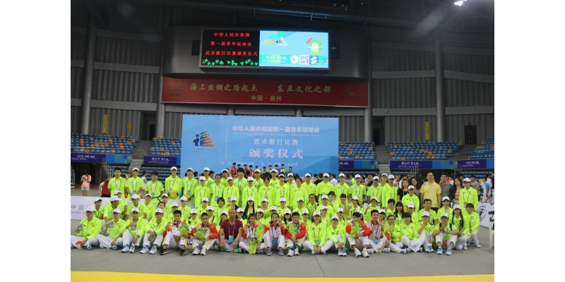 日,第一届全国青年运动会武术散打比赛项目在泉州海峡体育馆举行。