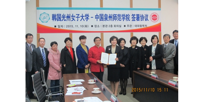 图为李清彪校长与光州女子大学签定合作协议