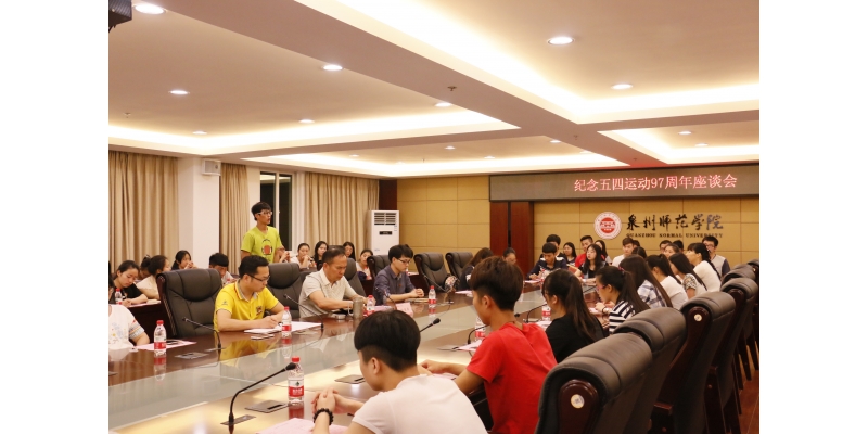 5月3日晚,我校在行政楼201会议室召开纪念五四运动97周年座谈会。校党委常委、副校长陈亚兵以及来自各二级学院受表彰的年度共青团先进集体、先进个人代表,团员青年代表共75人参加座谈会。会议由校团委副书记刘显新主持。