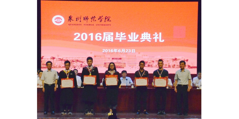 毕业生代表、校学生会主席、校长奖学金获得者、陈守仁工商信息学院李山同学在发言时感谢母校和老师的培养,深情回顾了在学校学习生活的点点滴滴,表示将决不辜负母校的培养,时刻铭记母校的教诲,牢记“善学如泉 正心至大”的校训,以优秀的业绩彰显泉州师院的风采。