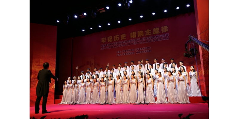 6月29日晚上,纪念中国共产党成立95周年和中国工农红军长征胜利80周年福建省大学生合唱节现场展演在福建农林大学礼堂隆重举行。我校音乐与舞蹈学院合唱团作为泉州地区唯一一支的高校代表队参加本次晚会展演,展演曲目《在灿烂阳光下》作为晚会的压轴节目,师生的精彩表演获得在场领导、观众的一致肯定和赞扬,荣获此次合唱展演一等奖。