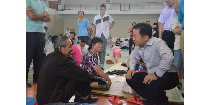 国家防汛抗旱总指挥部办公室副主任符传君带领工作组实地察看了我校陈伟利体育馆应急避难场所,详细了解了东海片区上实海上海项目900名施工人员的安置情况,并与施工人员亲切交谈。