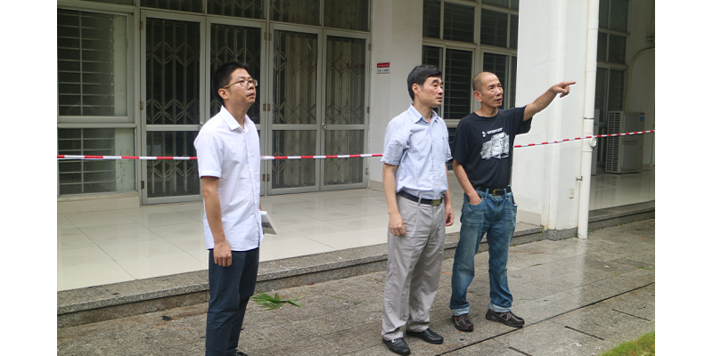 台风刚过,今天上午,校党委书记游小波、党委副书记林伟等领导深入到教学楼、实验室、学生宿舍等,实地察看受灾情况、指导灾后自救工作。