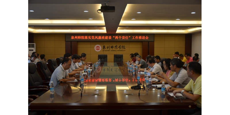 9月29日下午,学校在行政楼201会议室召开落实党风廉政建设“两个责任”工作推进会。校领导游小波、李清彪、邱银富,各二级学院院长、书记,机关各部门(含网络中心、学报)负责人、学校党风廉政建设领导小组办公室全体成员参加了会议。会议由校长李清彪主持。
