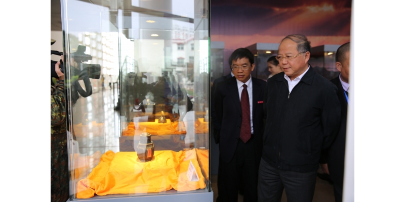 原文化部副部长、中国文物保护基金会理事长励小捷在李清彪校长的陪同下,参观“一带一路”文化遗产专题展览