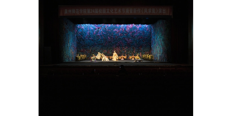 研讨会期间,参会嘉宾还饶有兴致地观看了由泉州师范学院音乐与舞蹈学院和泉州市南音传承中心表演的南音新作《凤求凰》。这部作品使用当代的技术手段,借鉴其他舞台艺术的表现形式,重新演绎了传统的南音艺术。在继承南音传统审美特性的基础上,从灯光、舞美和表演方式上进行了创新性的探索,彰显了南音这一非物质文化遗产独特的艺术魅力。
