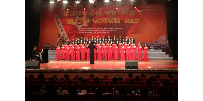 日前,“纪念红军长征胜利80周年——走进‘海丝’先行区泉州市”专场演出活动在陈祖昌礼堂举行。演出由我校、福建人民艺术剧院和福建文艺志愿者艺术团大榕树分团主办,校党委宣传部、福建省榕树合唱团、海峡文艺网承办。校党委常委、纪委书记邱银富,市教育局、海警第二支队、嘉泰数控科技股份公司相关负责人,一千多名来自基层的企业员工、部队官兵和我校师生的一致好评,博得了阵阵掌声。