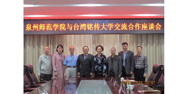 2016年12月23日上午,铭传大学王金龙副校长、两岸研究中心杨开煌主任一行来校访问,李清彪校长会见了客人,王珊副校长主持了两校交流合作座谈会,党政办公室、外事办/台港澳办、教务处、学科办以及政治与社会发展学院相关负责人参加了座谈。