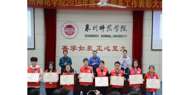 会上,校团委副书记刘显新宣读《2016年度泉州师范学院青年志愿服务先进集体、优秀组织者、优秀青年志愿者表彰决定》。主席台上领导老师为在“善行100·温暖行动”中表现突出的志愿者以及我校2016年度先进集体、先进个人颁发证书并合影留念。随后,外语、数计、软件三个学院代表进行青年志愿服务先进集体风采展示并做经验交流分享。(校团委)