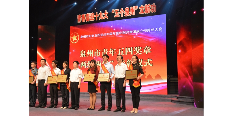 大会表彰了一批青年五四奖章获得者、“两红两优”集体和个人,我校音乐与舞蹈学院团委作为“2016年度泉州市五四红旗团委”获评单位代表上台领奖。此外,我校石狮产学研工作站主任李斌荣获第十届“泉州青年五四奖章”、黄丹琳、林小琴等两位老师获评2016年度“泉州市优秀共青团干部”、陈晓龙、陈宝莹、潘晓飞等三位同学获评2016年度“泉州市优秀共青团员”、陈守仁工商信息学院团委、音乐与舞蹈学院团委获评2016年度“泉州市五四红旗团委”、化工与材料学院14级化学团支部获评2016年度“泉州市五四红旗团(总)支部”。(校团委)
