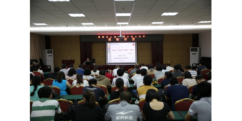 6月15日下午,校党委宣传部、教师发展中心联合在行政楼101会议室举办“增强育人意识,提升育人水平”为主题的道德讲堂活动。我校2016年以来入职的新教师及部分教师代表120多人参加了活动。