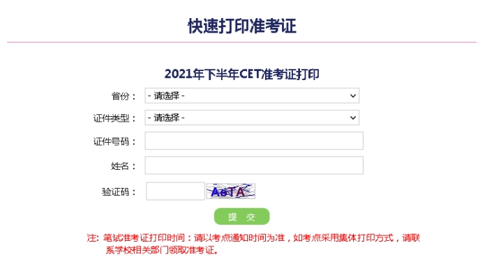 2.输入省份、证件类型、证件号码、姓名等信息即可打印准考证。