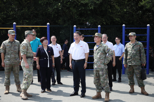 石伟林、柯瑞清一行到第二田径运动场实地察看了学生军训情况,并和军训团负责人、学校相关职能部门负责人深入交谈。石伟林要求,军训团要主动靠前,和学校深度融合,以高度的责任心和使命感完成好军训任务。柯瑞清强调,学校相关职能部门要做好教官的生活服务和学生的训练安全保障,要做好学校军训育人成效的宣传工作,提升学校国防教育美誉度。[学工部(武装部)]