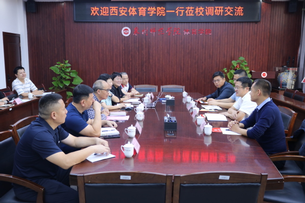 近日,西安体育学院党委副书记张卫国一行来我校体育学院交流座谈。副校长夏侯建兵会见来宾,学工部、教务处、体育学院等单位负责人参加相关活动。
