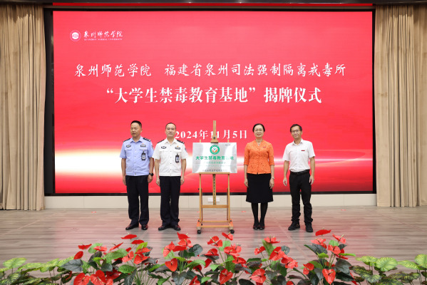 11月5日,学校与福建省泉州司法强制隔离戒毒所在中山纪念堂会议室举行合作共建签约仪式。校党委常委、副校长陈秋燕,福建省泉州司法强制隔离戒毒所党委副书记、政委林炎平,戒毒所党委委员、副所长兰翠河和警官代表,以及学校相关职能部门负责人、二级学院(系)党委(党总支)书记,辅导员和学生代表参会。