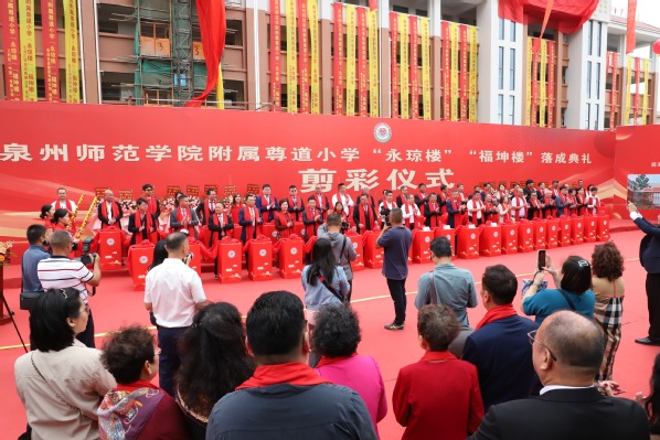11月12日上午,泉州师范学院附属尊道小学举行“永琼楼”“福坤楼”两座教学楼落成典礼。校党委书记柯瑞清、副校长黄江昆参加典礼并为教学楼剪彩。