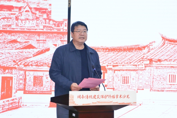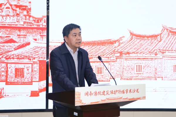 副校长夏侯建兵在致辞中指出,我校肩负助力文化遗产保护的责任。闽南传统大厝、侨厝凝结着先辈的建筑技艺和文化观念,此次沙龙正是贯彻落实习近平总书记关于文化遗产保护的重要论述精神的积极探索,也是学校立足新时代,坚定文化自信,坚持以“第二个结合”推动中华优秀传统文化创造性转化、创新性发展的实际行动。