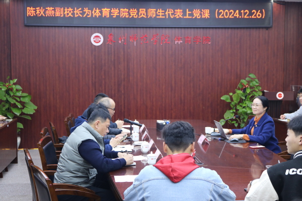 12月26日下午,校党委常委、副校长陈秋燕以《弘扬体育精神,做新时代好青年》为题,为体育学院师生党员代表讲授了一堂生动深刻的主题党课。体育学院党政负责人、学生支部党员、教师党员代表、学生入党积极分子参加。