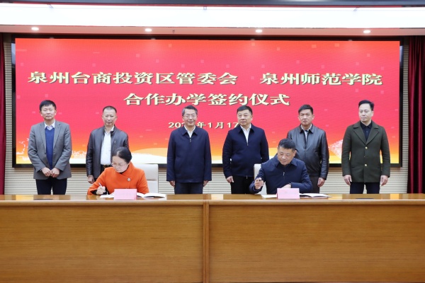 1月17日下午,我校与台商投资区合作办学协议签订仪式在台商投资区管理委员会顺利举行。台商投资区党工委书记苏延辉,台商投资区党工委委员、管委会副主任黄晓东,校党委书记柯瑞清,校党委常委、副校长陈秋燕,台商投资区相关职能部门、泉州惠南中学、第三实验小学主要负责人,我校相关职能部门、二级学院有关同志参加签约仪式。
