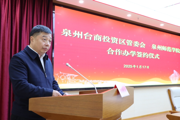 苏延辉在致辞中指出,近年来,台商投资区深入实施教育优先发展战略,持续推进基础教育扩优提质,实现了教育与产业、城市同步发展。当前,群众对优质教育的需求更为迫切、更为多元。台商投资区再次携手泉州师范学院合作办学,借助泉州师范学院先进的办学理念、优质的教学资源,合力支持台商投资区泉州惠南中学、实验小学提高办学质量,将进一步促进和带动台商投资区基础教育高质量发展,努力办好人民满意的教育。(发展规划处)