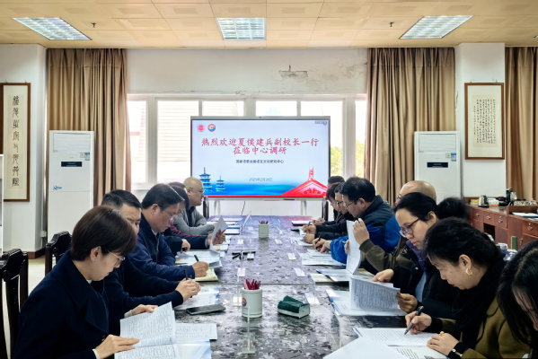 夏侯建兵对中心取得的阶段性成果表示肯定,特别针对“闽南文化数字博物馆”筹建方案和“闽南语数字人”技术研发提出指导意见,强调中心要立足学科优势,加强多维度资源整合,推动传统文化与现代科技的创新融合,并了解“丝路名城高校语言文化联盟”的建立情况,勉励团队继续深耕语言文化研究领域,在服务国家“一带一路”建设和地方文化传承方面发挥更大作用。