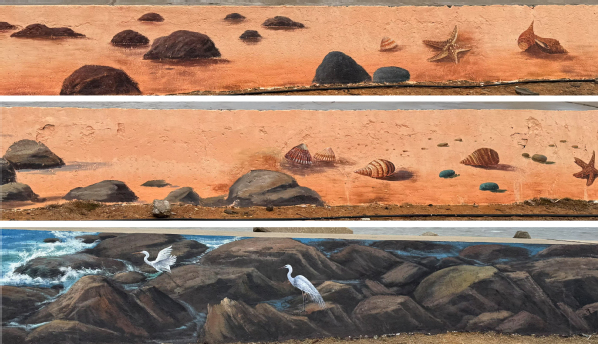 近日,由我校美术与设计学院与石狮公路分中心精心打造的国道228线石狮滨海段225米防浪堤彩绘长廊正式惊艳亮相。该彩绘创新项目由许瑞珍副教授领衔,联合蔡永辉教授、吴跃华老师共同组建核心创作团队,带领6名美术方向研究生,圆满完成从文化解码到视觉转译的全流程创作工作。