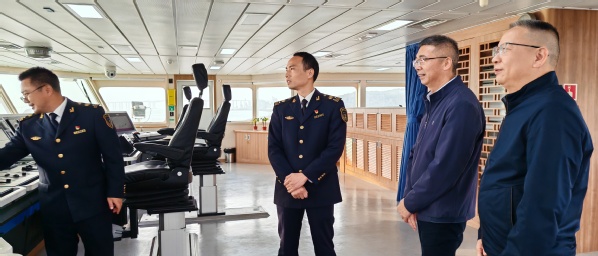 调研组一行走访了“海巡06轮”班组和平潭海事局。福州海事局副局长程明辉介绍了“海巡06轮”开展海上执法和海上救援的情况,以及作为国家水上交通安全教育基地开展的实践与交流活动;平潭海事局局长刘必胜带领调研组一行走访业务处室,参观船舶管理中心,看望在该局工作的我校校友。黄江昆介绍学校办学特色、航海类专业人才培养、国际交流与合作、社会服务的情况,感谢福州海事局的支持,为我校举办太平洋岛国汉语+海事业务培训项目提供实践观摩场所,并就今后持续拓展交流合作渠道、海事业务相关人才培养进行交流和探讨。