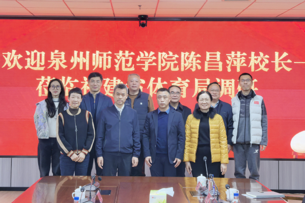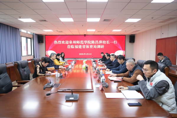 3月5日,校长陈昌萍带队赴福建省体育局开展调研交流活动,校党委常委、副校长陈秋燕,体育学院相关负责人陪同。福建省体育局党组副书记、副局长董劲松等领导接待我校一行。