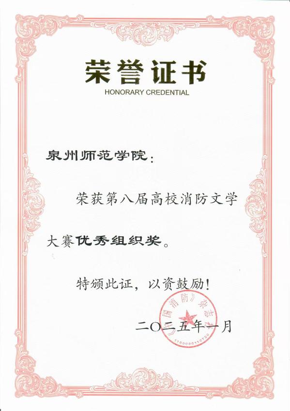 近日,由《中国消防》杂志社主办的第八届高校消防文学大赛圆满落幕,我校荣获大赛“优秀组织奖”,展现了学校在消防文化培育与建设方面的成效。