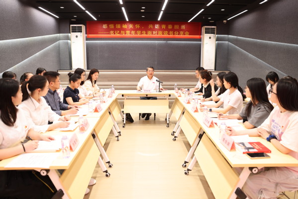 4月30日下午,我校在俊秀图书馆新华·正心红色悦读空间举办“感悟领袖关怀,共话青春担当”——书记与青年学生面对面读书分享会,共读共学共享《习近平与大学生朋友们》(第二卷)。校党委书记柯瑞清,挂联教育科学学院学生第二党支部党员和音乐与舞蹈学院宿舍学生,校团委、有关二级学院团委负责人以及马克思主义学院黄河老师等参加。
