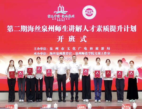 蔡鸿强表示,面对泉州文旅长红态势,尤其是随着240小时过境免签政策实施,文旅市场呼唤大量高素质、专业化双语讲解员,带领海内外游客领略世遗之城的历史魅力,推动泉州文旅品牌在国际市场上的传播与推广。希望参训师生以高度的责任感,遵守管理制度,合理规划学习时间,积极与导师互动交流,反复打磨讲解技巧,熟练掌握讲解流程,通过专业、热情的志愿讲解,让每一位游客都能深度领略泉州魅力,让“宋元中国,海丝泉州”城市名片更加熠熠生辉!