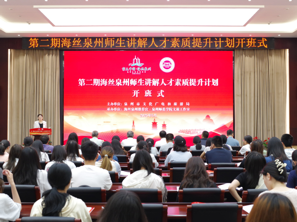 5月24日,由泉州市文化广电和旅游局主办,我校承办的第二期海丝泉州师生讲解人才素质提升计划在中山纪念堂第一会议室正式开班。副校长黄江昆、泉州市文化广电和旅游局副局长蔡鸿强,相关职能部门、文旅工作室负责人以及参训师生,共100余人参加。