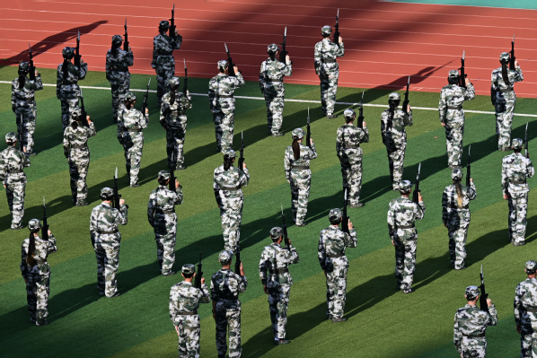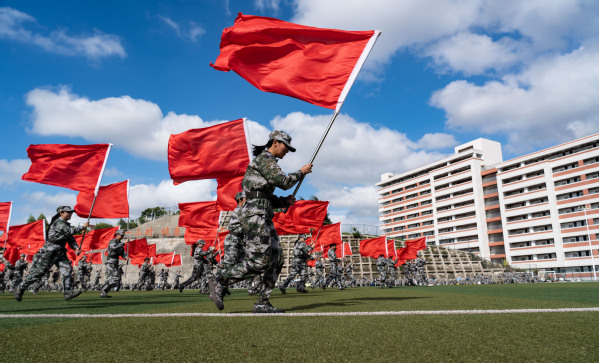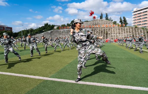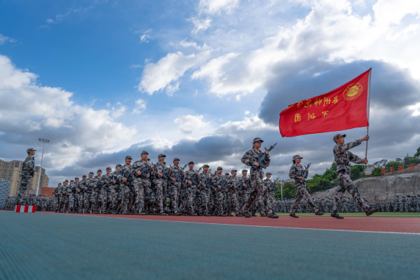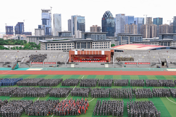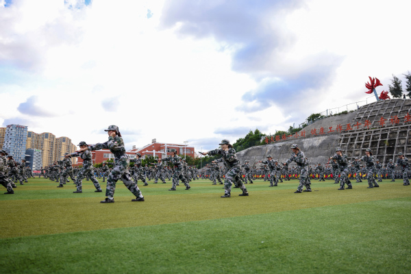 9月22日下午,我校2025级新生军训会操暨总结表彰大会在第二田径运动场举行。
