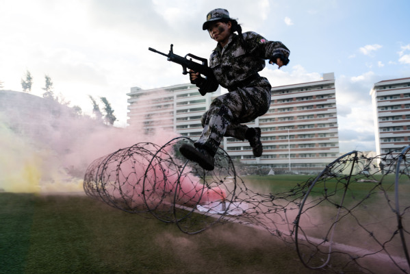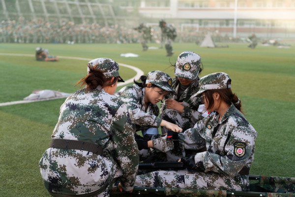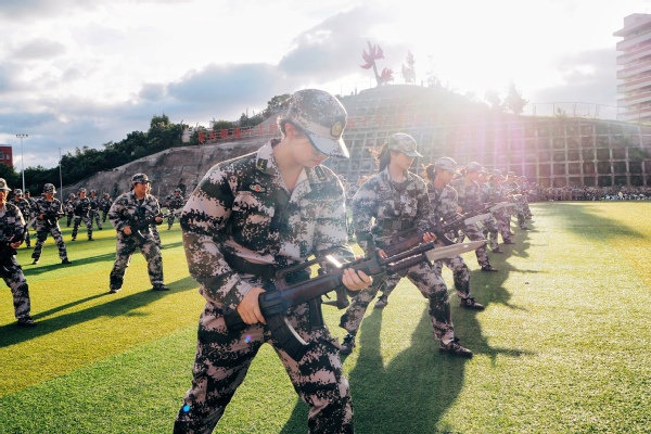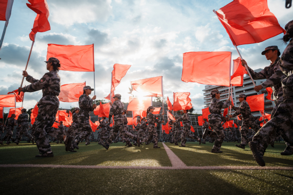 伴随雄壮的国歌声,军训会操拉开序幕。各方队依次列队,脚踢正步,有序入场;匕首操、旗语操、刺杀操、军体拳、舞旗、战术方阵等军事科目汇演依次展开,检验此次军训取得的良好成果,充分展示了学子们昂扬向上的精神风貌。