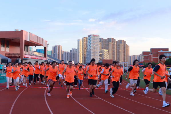 发令声响,身着统一橙色服装的师生们化作一道道“海洋橙”,如奔涌的浪潮般环绕跑道,身姿挺拔、步伐铿锵。跑道旁,啦啦队队员们挥舞着鲜红的国旗,此起彼伏的呐喊助威声与欢笑声交织在一起,不仅为奔跑的师生注入力量,更营造出师生同心、喜迎国庆的浓厚氛围。“和老师、同学一起朝着同一个方向奔跑,让我真切感受到了集体的凝聚力!”“冲过终点线的那一刻,热血又激动,这是最特别的开学记忆!”刚跑完步的新生和教师们气喘吁吁却难掩兴奋,纷纷分享参与活动的感受。