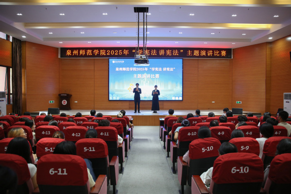 9月25日下午,泉州师范学院2025年“学宪法 讲宪法”主题演讲比赛在特教大楼第二学术报告厅举行。活动由党委宣传部、学生工作部、校团委联合主办,陈守仁商学院(知识产权学院)承办。相关职能部门负责人、评委老师、知识产权专业师生代表参加。