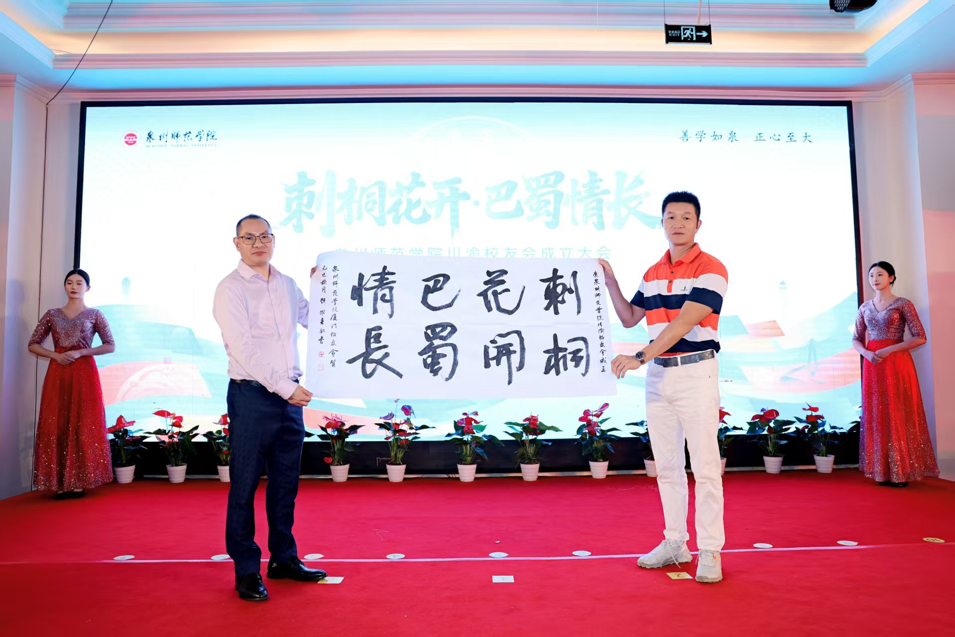 10月18日,泉州师范学院川渝校友会在成都正式成立。校党委书记柯瑞清、校长陈昌萍、副校长黄江昆,冠城集团董事长、1977级校友洪清宜,泉州市人民政府驻成都办事处主任杨群晖,成都侨商会会长洪清鹏,泉州师范学院北京校友会会长赖瑞拥、莆田校友会会长郑新华、厦门校友会常务副会长兼秘书长王旭东,大湾区校友会(筹)代表李增景,四川省厦门大学校友会、福州大学四川校友会、华侨大学四川校友会、福建农林大学四川校友会,四川大学、西华大学、成都教育考试院等兄弟高校代表,在蓉泉籍商会会长,学校相关职能部门和学院负责人,川渝地区校友代表等120余人出席活动,共同见证泉州师范学院川渝校友会的成立。