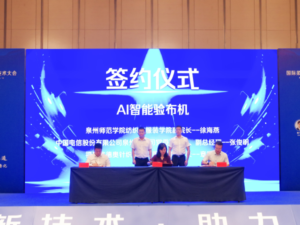 会上还举行了“AI 智能验布机”与“健康用智能可穿戴纺织品的应用与推广” 战略合作签约仪式。