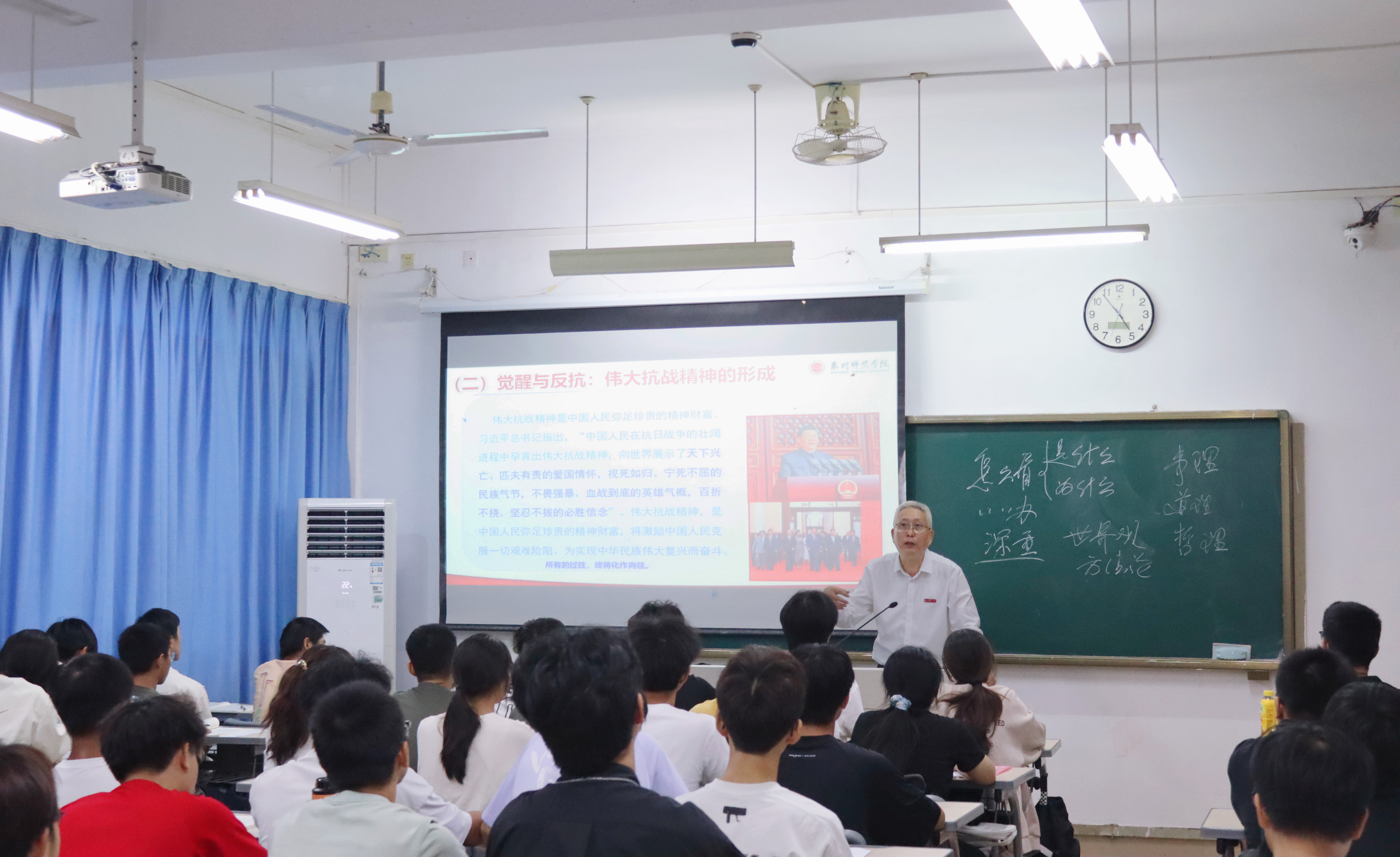 10月22日,校党委副书记陈晓风以“传承伟大抗战精神 谱写时代青春华章”为题,为海洋与食品学院2025级海洋技术专业学生上思政课。