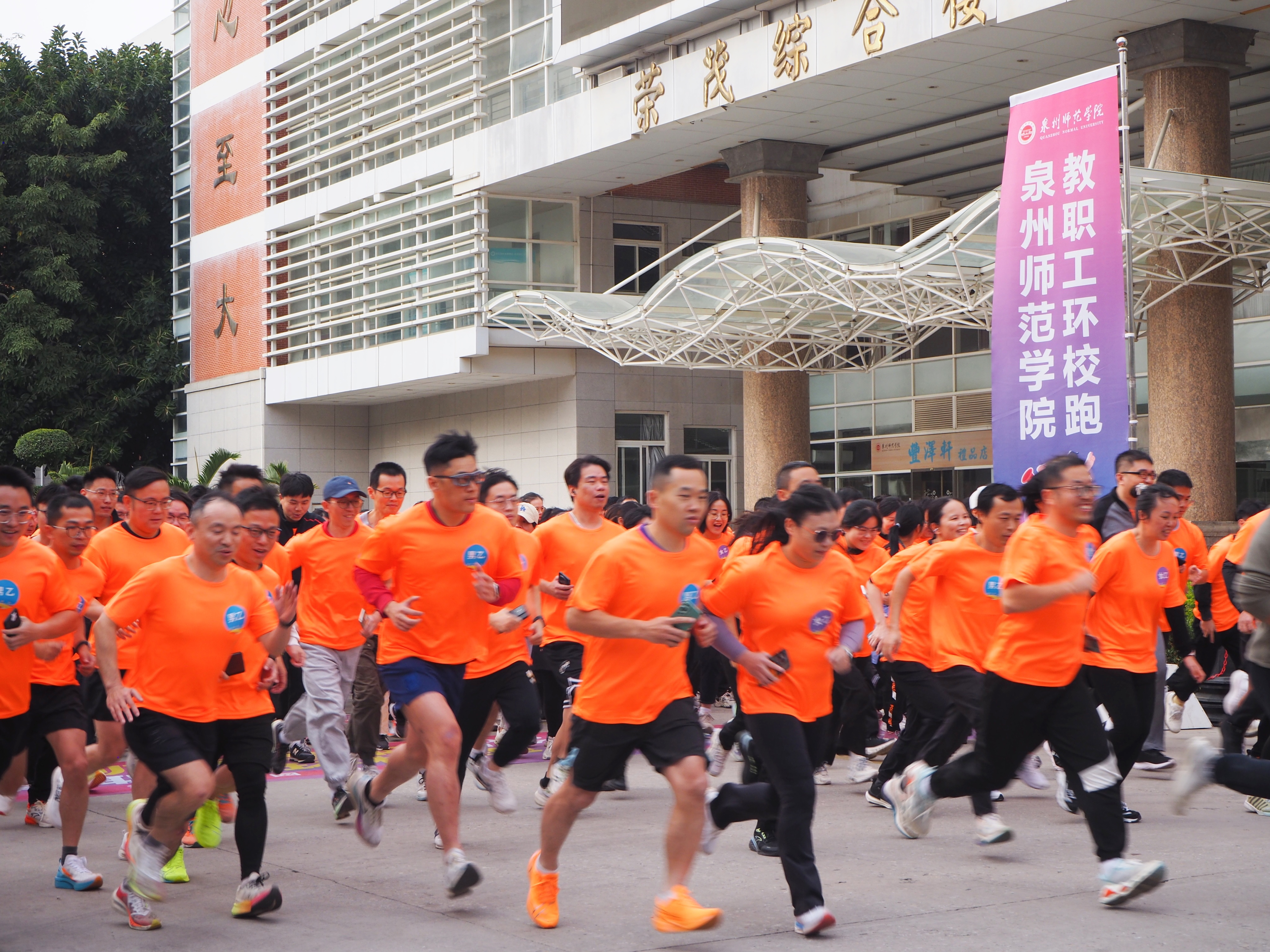 为深入推进“运动校园”“文化校园”建设,倡导健康生活理念,丰富教职工文体生活,营造积极向上、充满活力的校园氛围,我校于11月27日在泉州主校区举行“运动校园、健康同行” 2025年教职工环校跑。本次活动由校工会委员会主办,体育学院、后勤处、保卫处、团委协办,太平洋人寿保险泉州支公司支持,在家校领导与各二级工会的800余名教职工参加了活动。