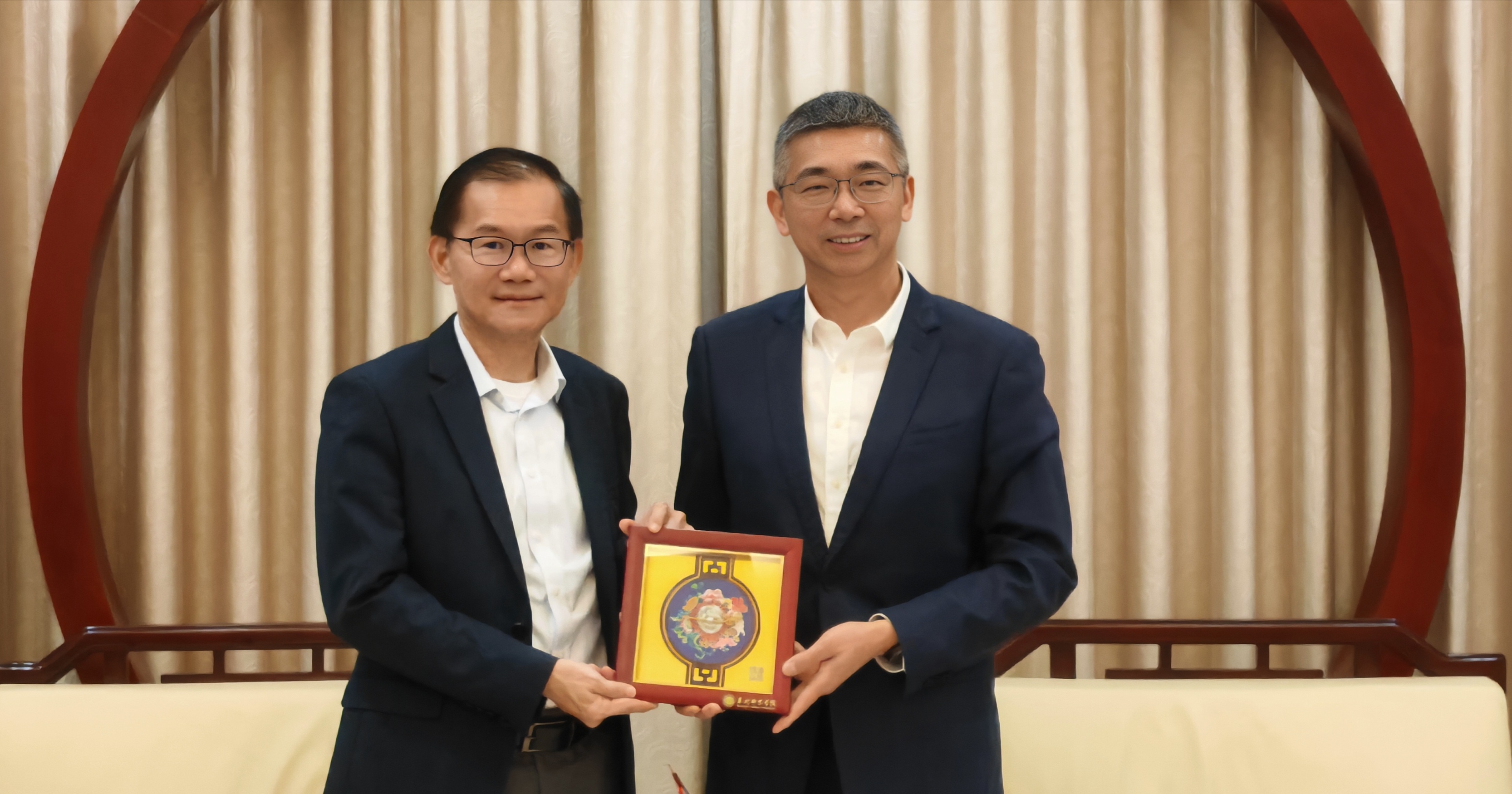 期间,陈正锦一行实地走访了文学与传播学院、丝路语言文化研究中心和古陶文博馆,体验360°大型船舶操纵模拟器,还与在校马来西亚学生亲切交流。